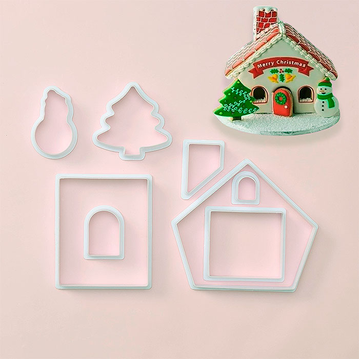 В наборе восемь резаков разных форм, что позволяет создавать пряничные домики разных размеров.