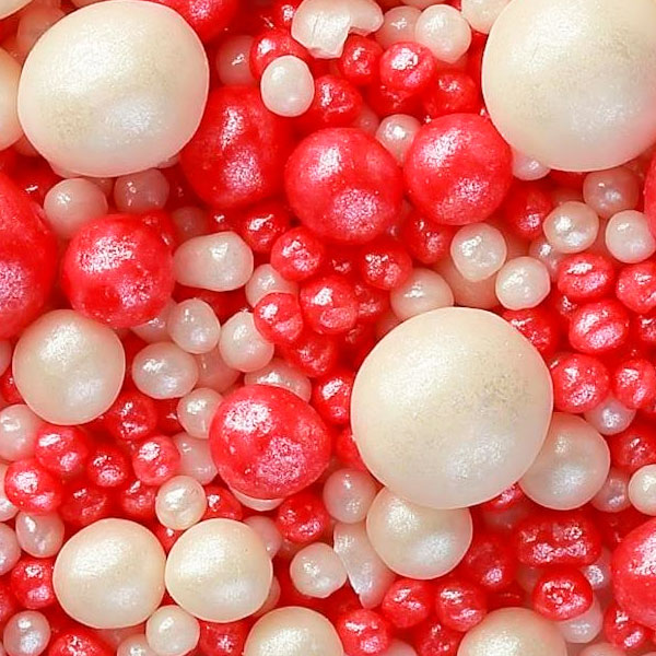 Посыпка Зерновая #165 микс жемчуг красный, серебро